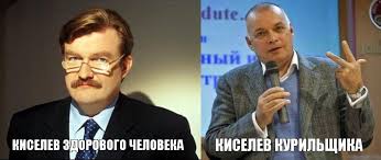 Киселев, который по вашему якобы "здоровый" был всегда таким же пропагандоном и до сих пор им остается. Только хозяина поменял. Сейчас вкалывает на телеканале президента-олигарха. Славился всегда ужасными передергиваниями и, как правильно заметили, отвратительной манерой речи.