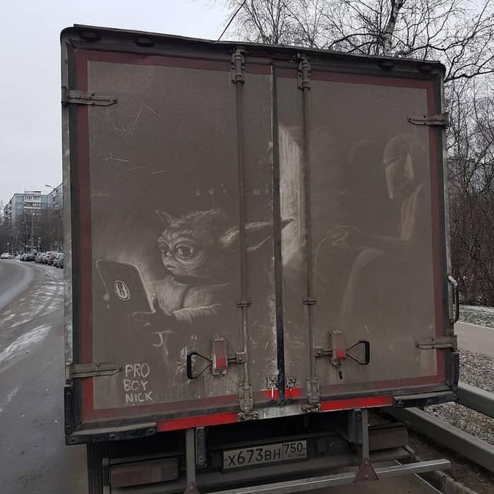 А не было бы на наших улицах столько грязи - как бы он смог создавать свои шедевры? 😄