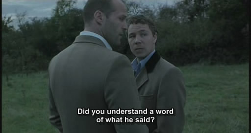 Напомнило русскую классику, когда в диалогах вставлены иностранные слова и хрен поймешь, пока сноску не прочитаешь.