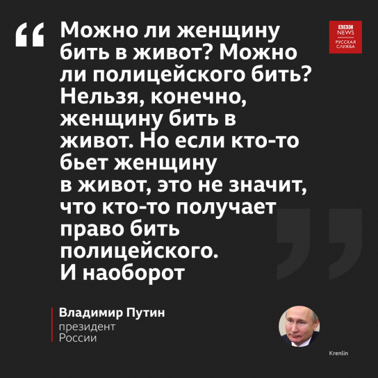 Мне прям интересно, что он имел в виду под фразой "Но если кто-то бьет женщину в живот, это не значит, что кто-то получает право бить полицейского. И наоборот"?