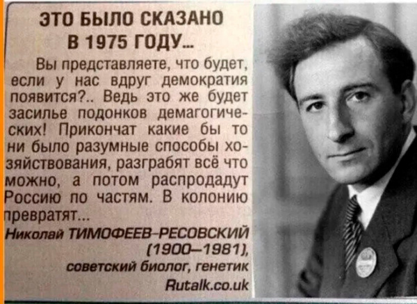 И было это примерно то же, о чем этот Тимофеев-Ресовский и писал, а именно засилье демагогии.