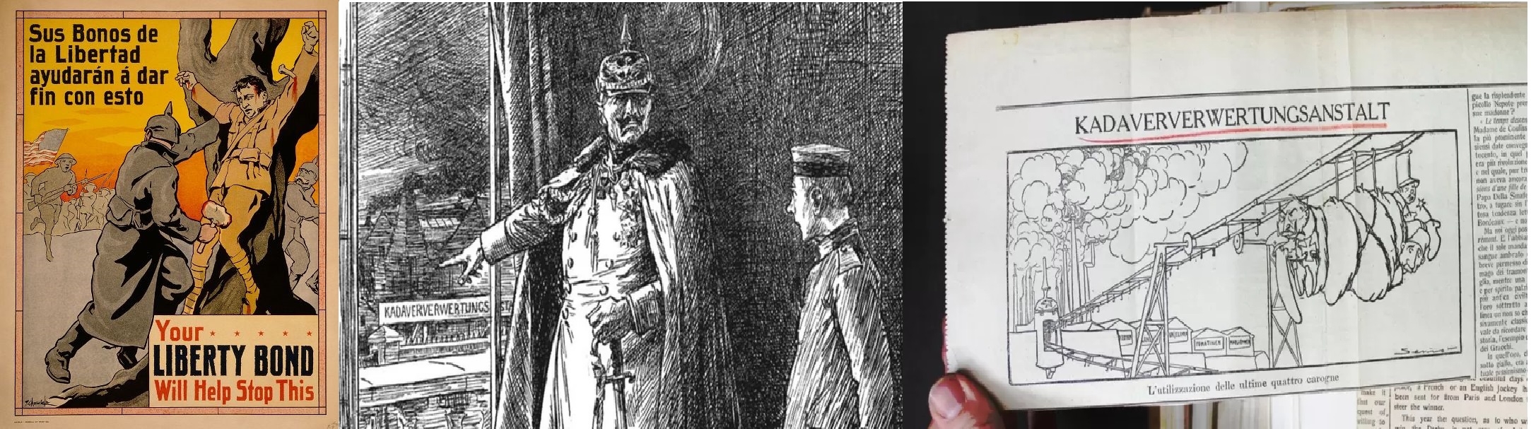 В начале 1917 года влиятельнейшие британские газеты The Times и The Daily Mail опубликовали материалы о немецких фабриках трупов. Сообщалось, что немцы вовсе не хоронят своих павших солдат, как подобает христианам, а целыми вагонами свозят их на специальные фабрики, где из их тел добывают жир и делают мыло, а останки перерабатывают на корм свиньям. Газеты ссылались на бельгийскую газету, которая выходила в Британии и ссылалась на другую бельгийскую газету, которая, в свою очередь, ссылалась на голландские газеты, которые, в свою очередь, будто бы ссылались на немецкие газеты.
