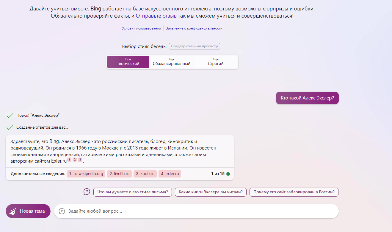 Играюсь тут с ИИ - с ChatGPT и с Bing AI.