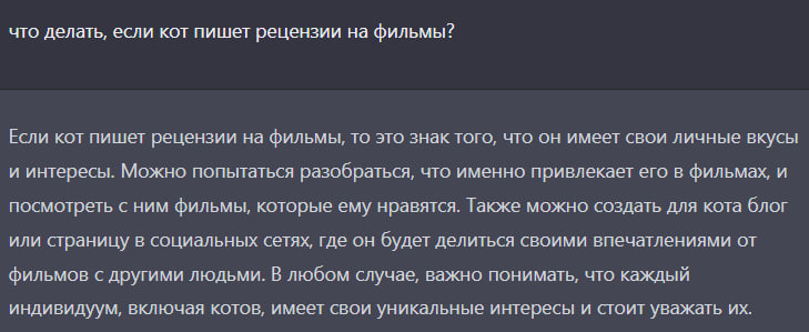 Решил в порядке общего бреда задать вопросы про кота, пишущего рецензии на фильмы, и "абырвалг" Алисе.