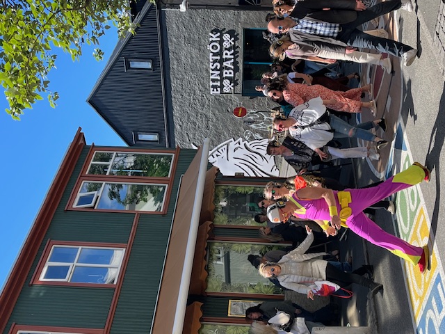 Видели в Рейкьявике очень своеобразную группу людей, которые передвигались по улицам, пели и танцевали под Квин и АББУ.