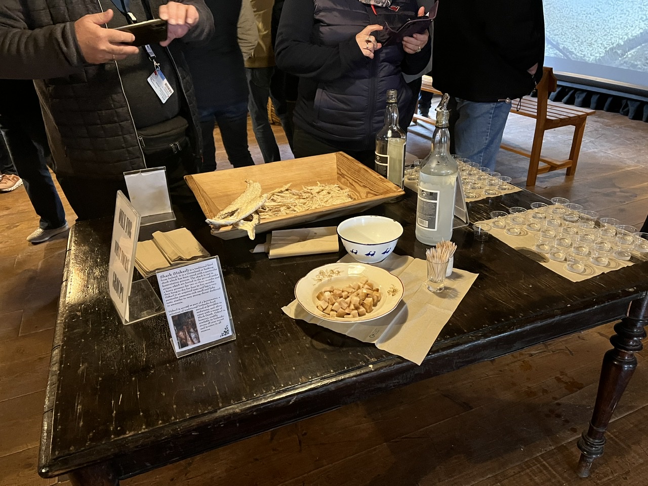 Пробовала я это мясо акулы (чтобы иметь представление). Вкус и правда очень специфический, но под шнапс пойдёт. Из всей группы решилась попробовать примерно половина.