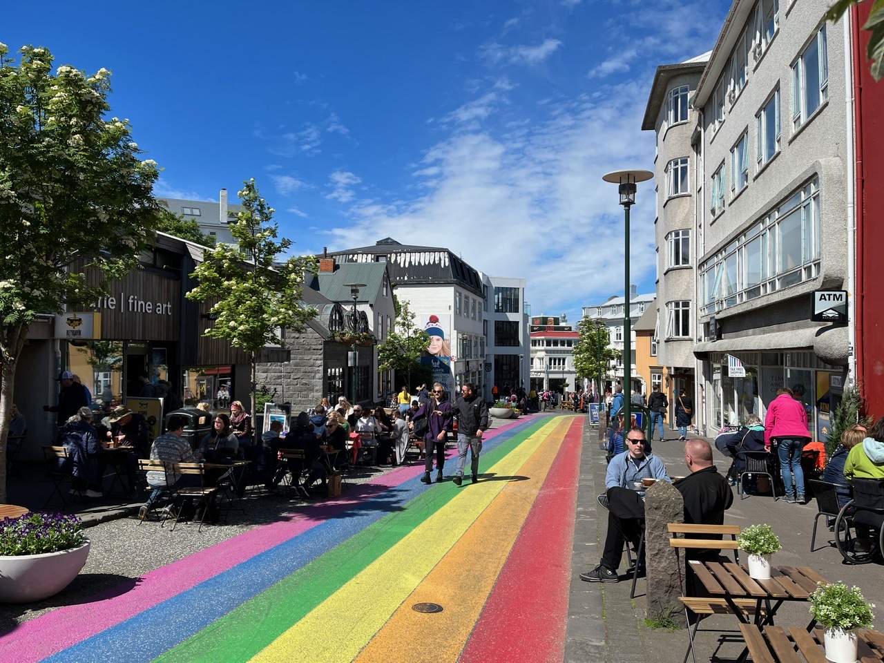 Ну и чтобы два раза не вставать. Видели в Рейкьявике очень своеобразную группу людей, которые передвигались по улицам, пели и танцевали под Квин и АББУ. Предводителем у них был очень интересный мужчина в розовом. Не знаю, что у них там за воркшоп был…
