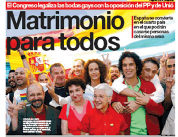 В Испании по Гражданскому кодексу полностью уравнены в правах разнополые и однополые пары, в том числе - в отношении усыновления, наследования и пенсионного обеспечения.