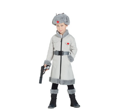 Да, пионерско-октябрятская там явно лишняя - достаточно той, что на папахе. А вот бутылка водки из кармана торчать должна бы - даже у детей.