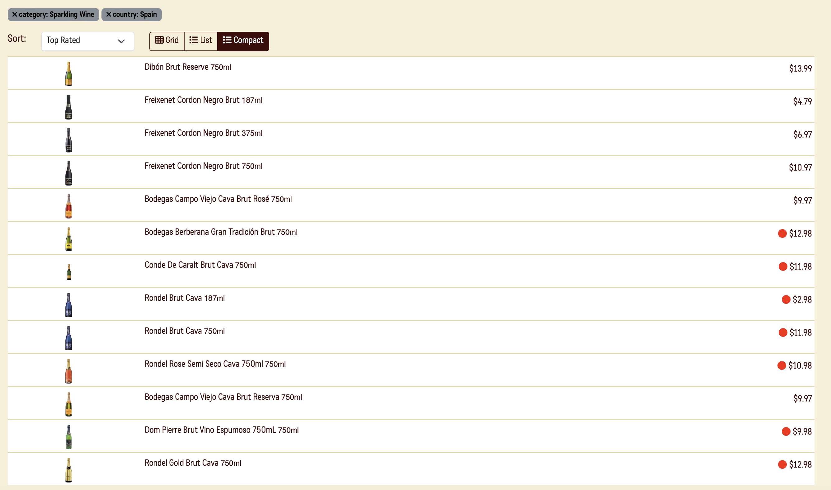 Испанские игристые в моей любимой лавке. сортировка по рейтингу.