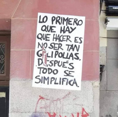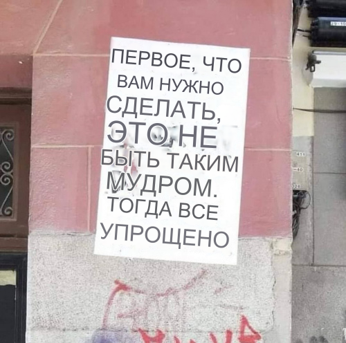 Надпись на плакате: "Нужно постараться просто не быть таким мудаком, а после этого все сильно упрощается". Via