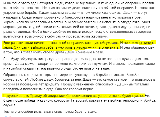 Ну и, в общем, судя по материалам дела, этот Роман Попков (бывший член "Русского национального единства", экс-лидер московского отделения Национал-большевистской партии Эдуарда Лимонова) и некий сотрудник СБУ, известный только по псевдониму, просто втемную использовали Дарью: из материалов известно, что она была против войны и сочувствовала Украине. Вот так они этим сочувствием воспользовались.