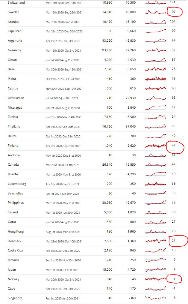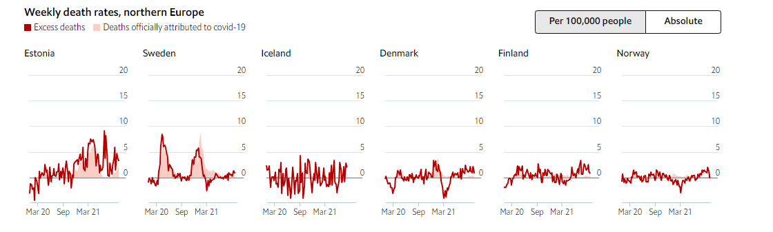Это да. Но если посмотреть эту же таблицу не с общими, а именно от ковида смертями, то Швеция уже на 33 месте, с количеством большим чем у всех Северных стран.