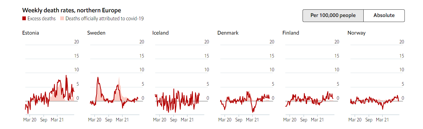 Реальный показатель лишь один – количество точно определённых смертей от ковида. И тут Швеция всё ещё "на коне" среди всех соседей, увы...