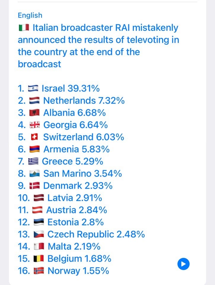 На самом же деле Эден победила с огромным отрывом от второго места (Нидерланды) - по результатам слитого по ошибке тетевещателя голосования итальянских телезрителей.