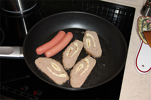 А сосиски надо было надрезать где-то через сантиметр! Они бы тогда изящно закрутились!