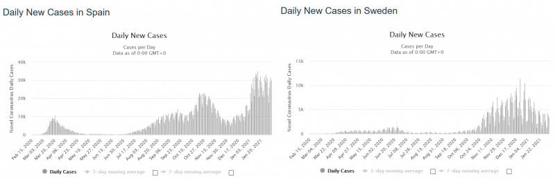 В Швеции тестируют в 2.5 раза меньше на 100000 населения чем в Испании, а позитивных тестов там намного больше чем в Норвегии и Финляндии.