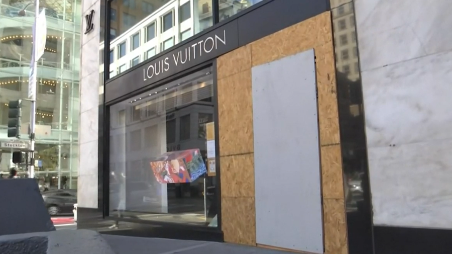 витрины забивают фанерой. чтобы угнетенные не воровали Луи Вьютон и Гучччи
