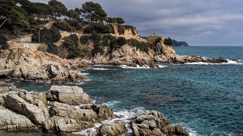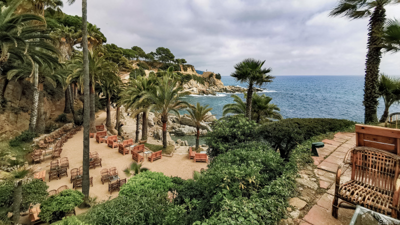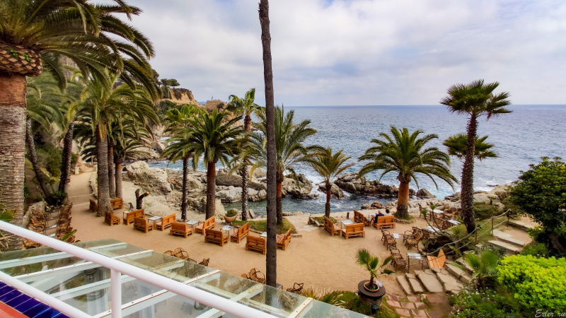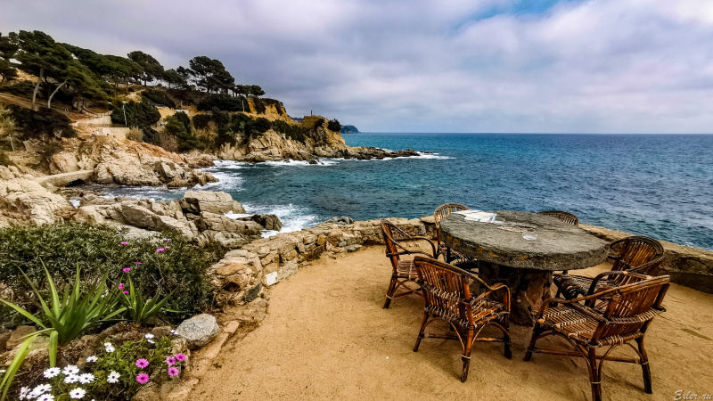 Скатались в чудесное место - кафешку Cala Banys, стоящую в заливе Льорет-де-Мара. Там потрясающе красиво, так что цена в 10-12 евро за коктейль кажется вполне оправданной: добраться туда - очень и очень непросто, дорогу прокладывали владельцы кафешки, так что почему бы и не заплатить. Тем более что мы коктейли не пили, ограничились двумя кофе и чаем всего за 10 евро за все.