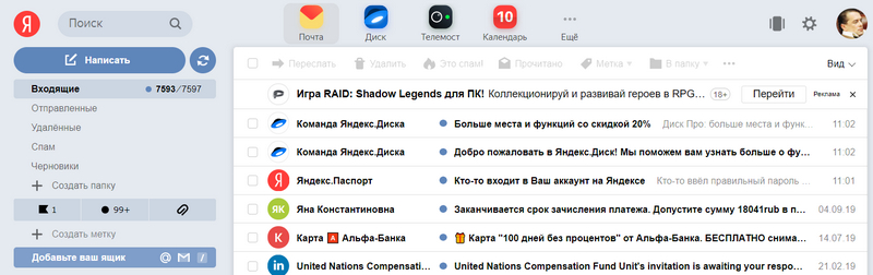 Почта у меня очень давно, но ни разу не пользовалась. В ней только спам лежит. Но вряд ли это влияет...