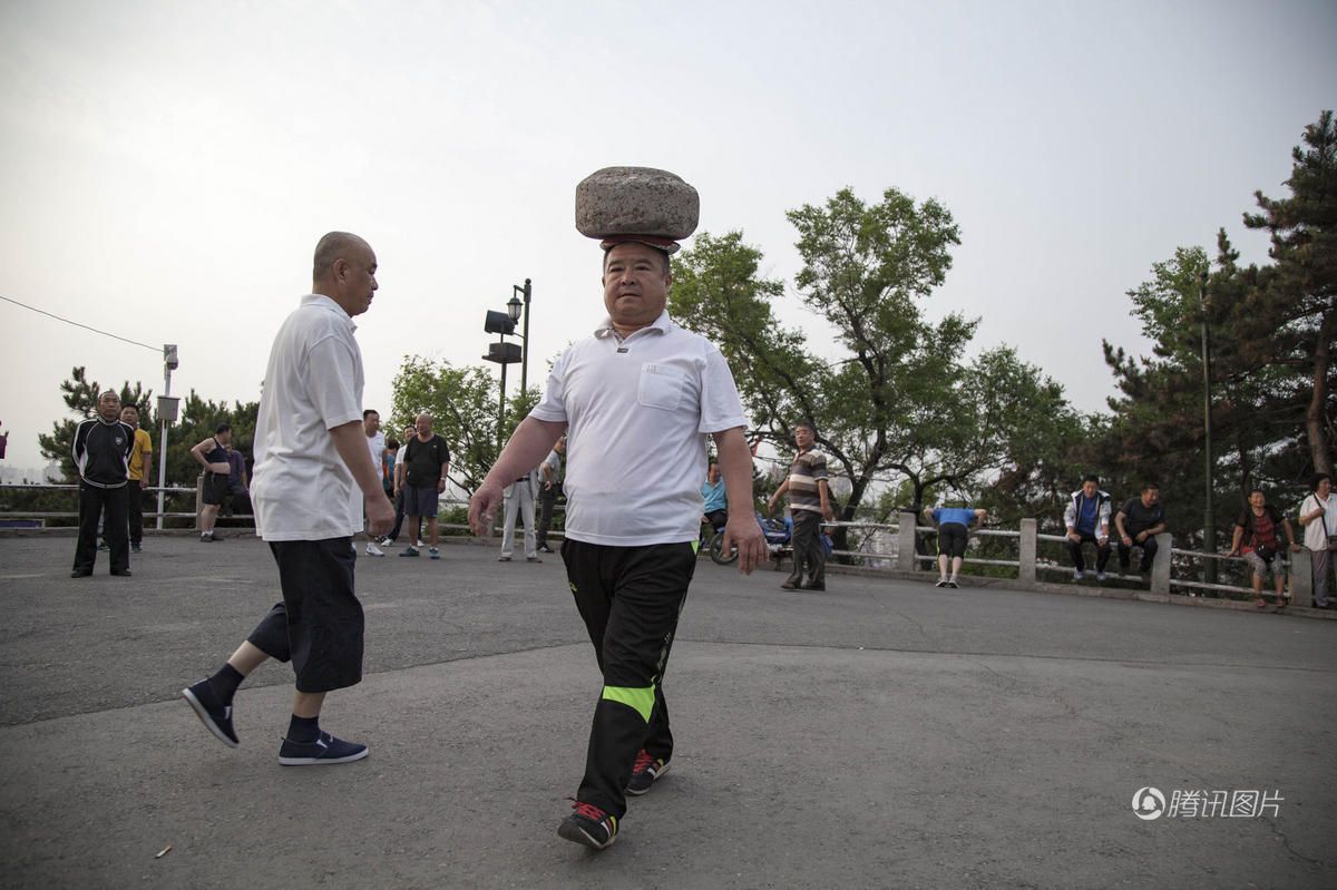 Последние 4 года житель города Чилин, который находится в Китае, продолжает шокировать горожан своим внешним видом. Каждый день Кон Ян носит на голове огромный камень, вес которого составляет 40 кг. (Отсюда.)