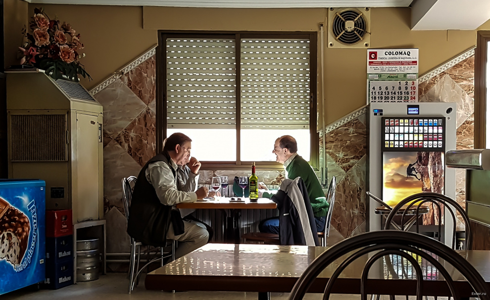 И там я сделал на смартфон вот этот очень характерный для Риохи кадр: 09:30 утра, в Риохе пошла первая бутылочка Риохи. (Я его уже публиковал, но тут не смог удержаться.)
