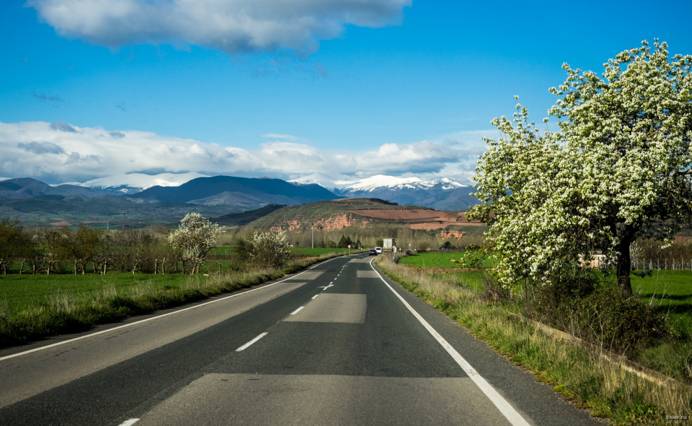 Дорога до городка Baños de Río Tobía, где располагается хозяйство, очень колоритная. Вот такие городки на фоне гор попадались постоянно. (В Риохе вообще очень красиво.)