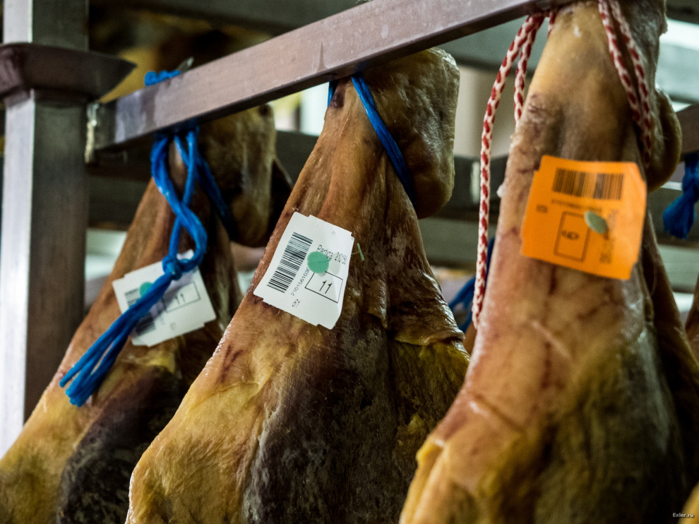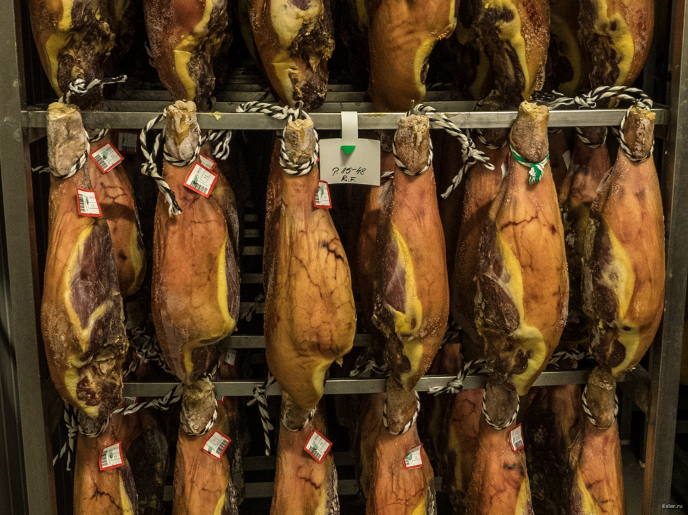 Кстати, только в этом городке хозяйств по производству хамона и колбас - уж пять штук. Микроклимат в этом месте очень способствует правильному созреванию, поэтому именно созданием хамона тут в основном и занимаются.