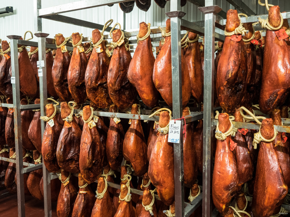 Во время поездки в Риоху нам удалось посетить семейное предприятие Martínez Somalo, которое существует с 1900 года и производит хамон, колбасы и колбаски. Потому что было очень интересно посмотреть, как именно производится знаменитый испанский хамон.
