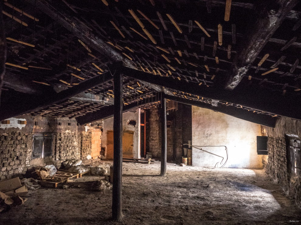 Нам показали старое помещение фабрики - вот так это все выглядело в начале прошлого века. Ляжки и колбасы подвешивались в этом помещении, широко открывались окна и продукт сыровялился на ветру.