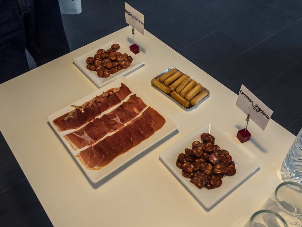 Далее у нас была небольшая дегустация. Колбасы чорисо очень понравились, хамон-рохо - ну, интересно, но я не сказал бы, что это нечто такое, что ах как здорово. Хамон как хамон, только чуть острее, чем обычно.