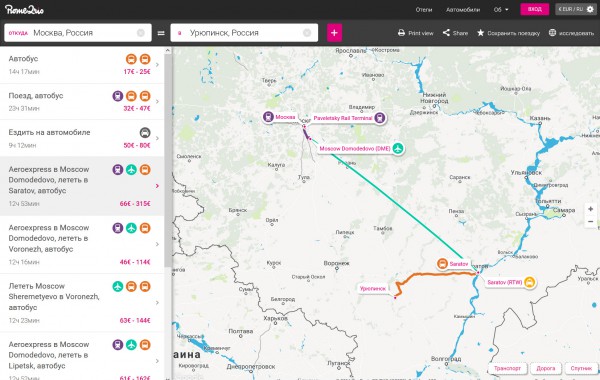 Ну с Москва-Урюпинск у него тоже не все гладко. Предлагает лететь до Саратова а оттуда второстепенной дорогой пилить до Урюпинска. А надо бы лететь до Волгограда и по нормальной трассе М6 до Урюпинска.