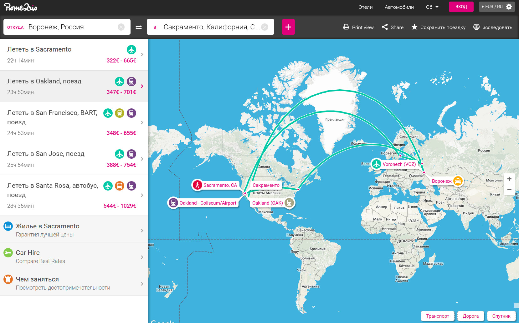 За маршрут Воронеж - Сакраменто спасибо! Задумался)))