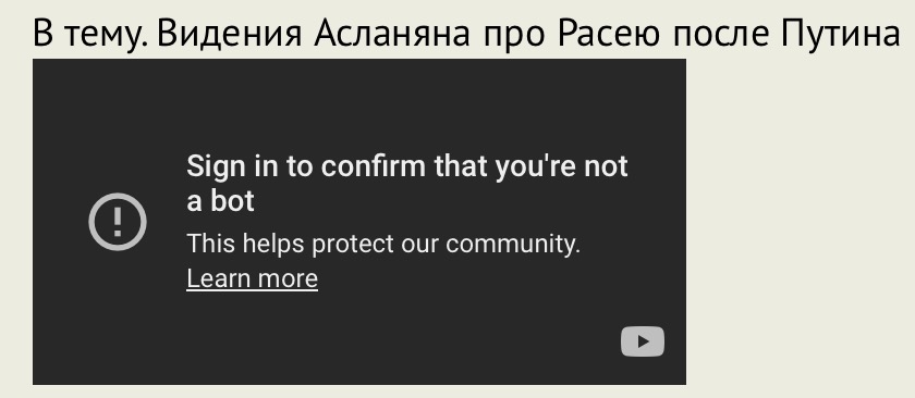 Алекс, привет! Если читаете комментарии, проверьте, пожалуйста, что случилось с видеороликами в комментариях, у меня Safari (macOS Sequoia 15.1), миниатюру любого ролика мне видно нормально, но при щелчке по миниатюре картинка меняется на такую, что я привел ниже, и когда я кликаю на воспроизведении, открывается главная страница Ютуба, а не ролик.