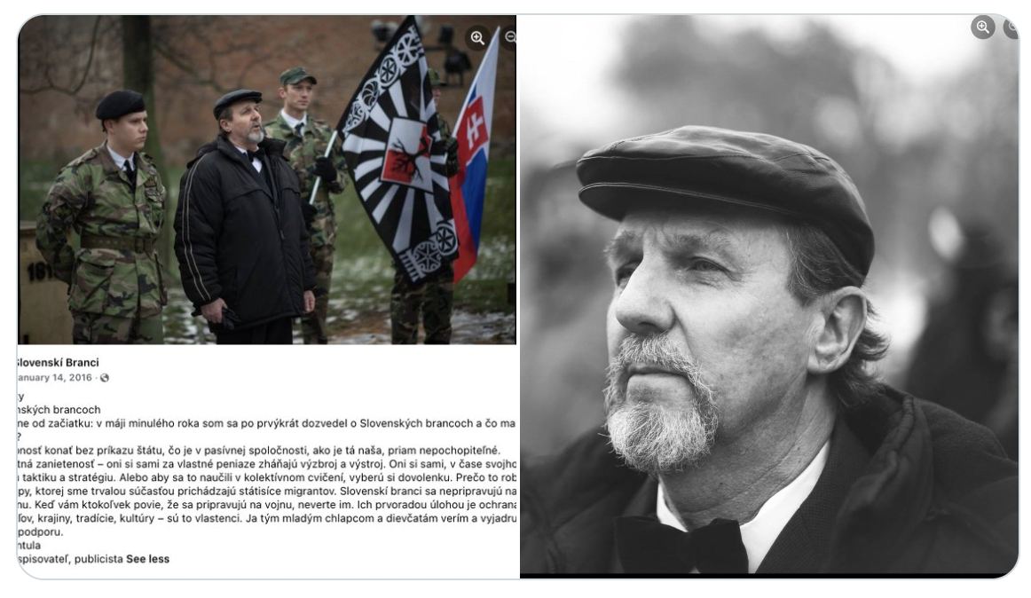 Из связей с группировкой - хвалебный текст незадачливого писателя-убийцы аж из 2016 года и фото со словацко-российскими патриотами.