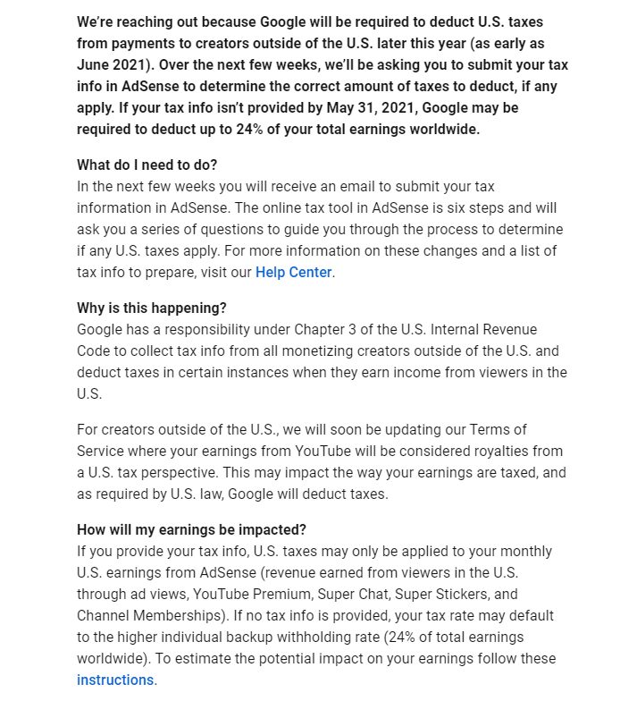 Прочитал внимательно, но не дошло : а чем вызвано такое изменение? что-то поменялось в американском налоговом законодательстве, или это просто жадность ютуба взыграла?