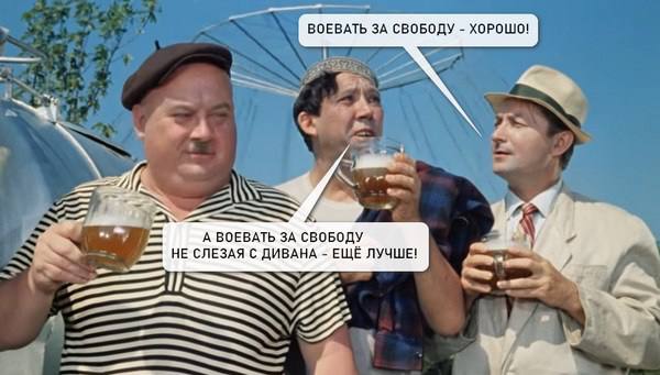 1. Украинцы воют, потому что «они хотят воевать / их заставляет Запад / пропаганда в Украине / заставляет наркоман Зеленский / там вообще одни наемники и НАТО, украинцев нет» - выберете нужный вариант, как говорится.