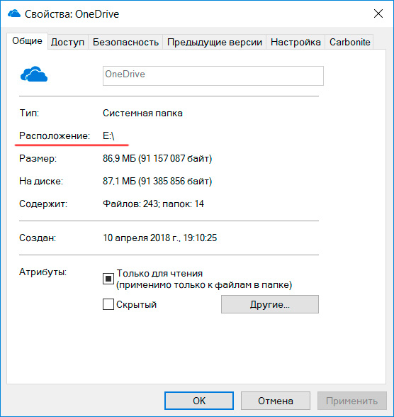 Ну и все, теперь OneDrive работает со своей папкой, расположенной там, где вы указали.