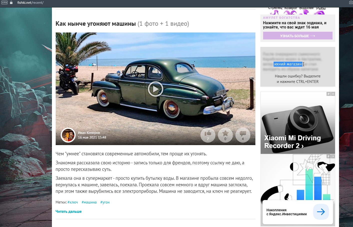 Ну и вот она теперь пытается выяснить, как от такого вообще спасаться. На сервисе ей посоветовали поставить дополнительный иммобилайзер, а также банально оборачивать ключ фольгой, чтобы с него не могли считать данные.