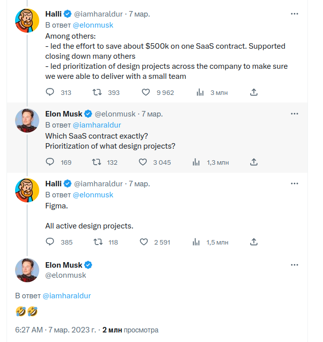 «Я хотел бы извиниться перед Торлейфссоном за моё непонимание его ситуации. Это было основано на вещах, которые мне сказали, которые были неправдой или, в некоторых случаях, правдой, но не имели смысла. Он рассматривает возможность остаться в Twitter», — сообщил Маск 8 марта.