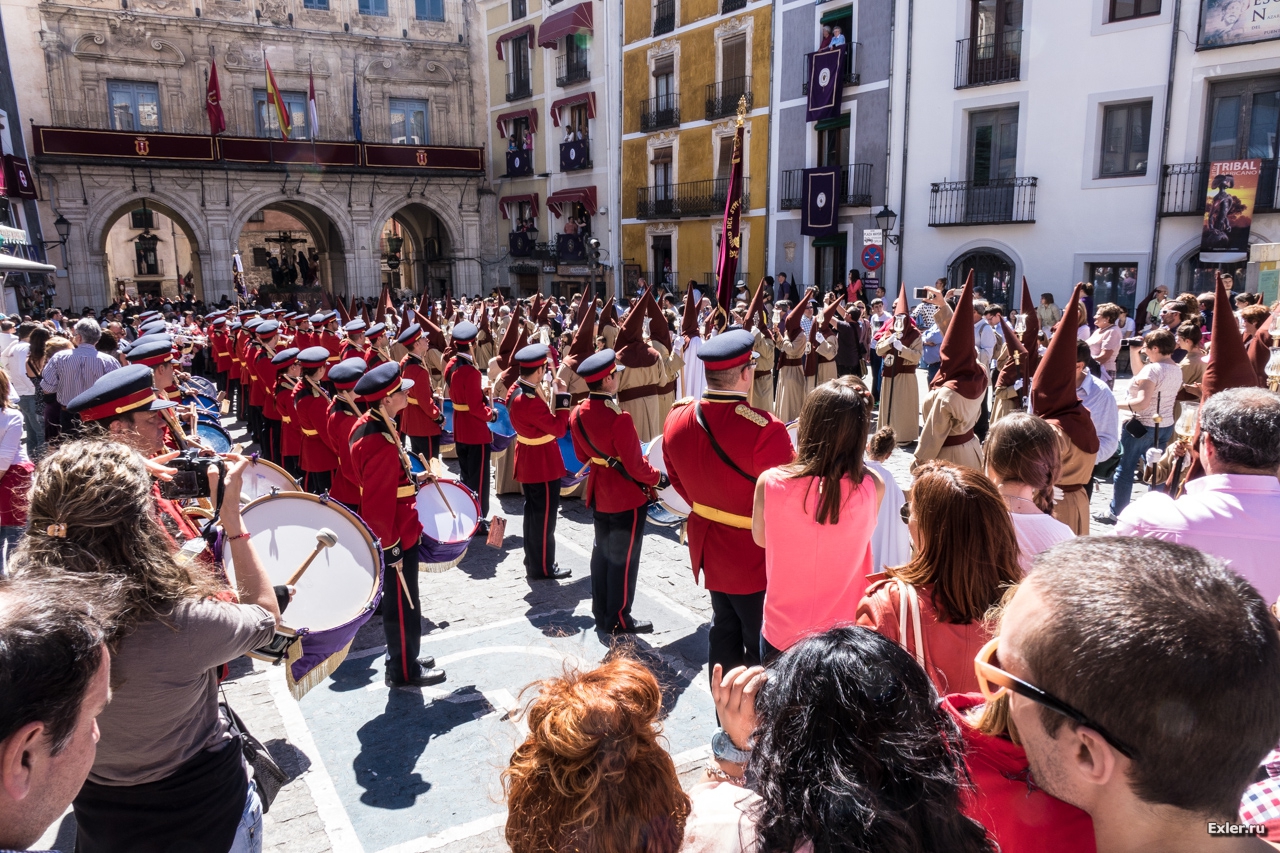 Не знаю, как в Куэнке, а в Теруэле в барабаны били, по-моему, всю Святую неделю, включая ночь: последние звуки раздавались где-то в 6 утра, а с полудня все начиналось сначала.