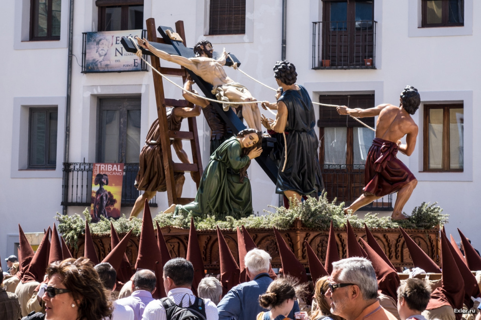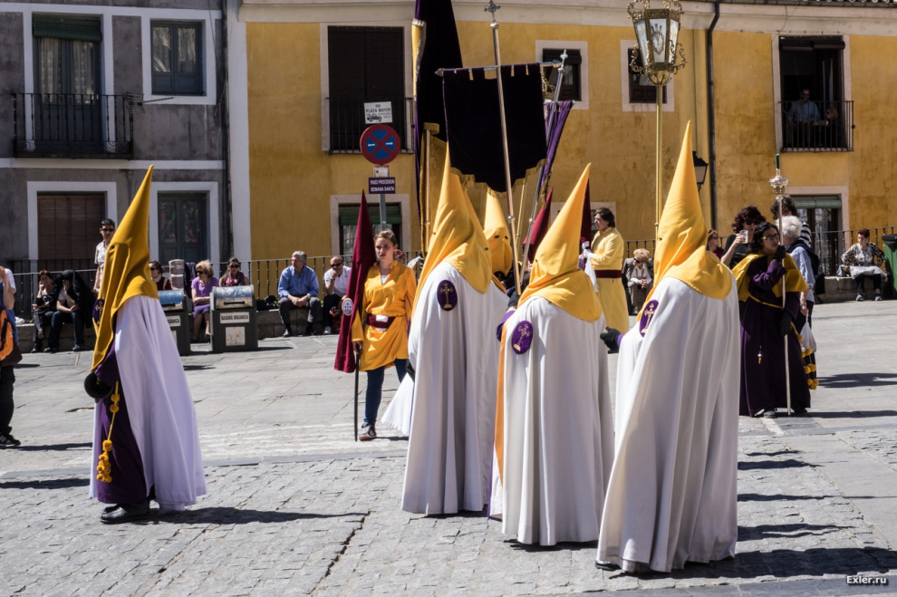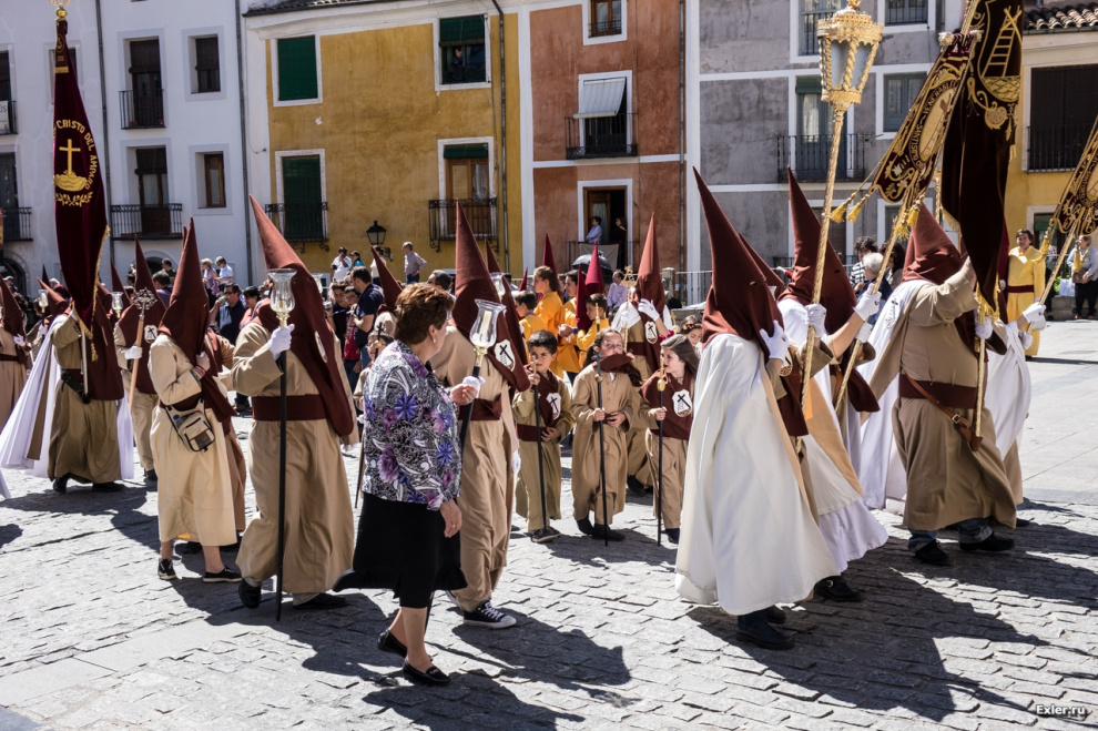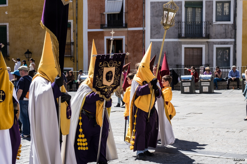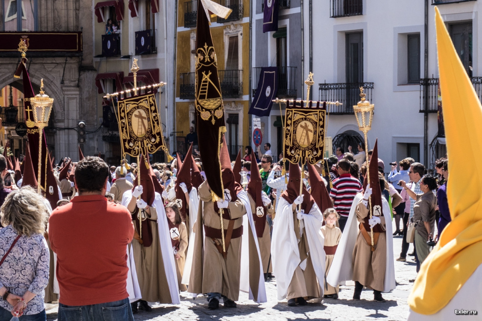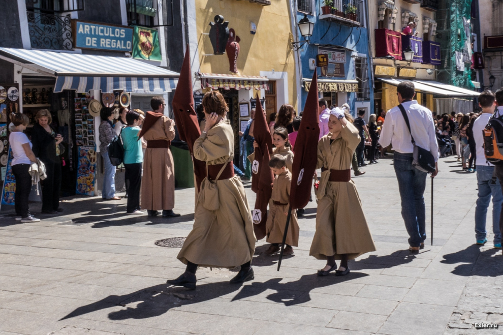 У различных церковных общин - разные цвета балахона, накидки, колпака. В городе Куэнке этих общин много, так что мы встретили несколько десятков одеяний различных расцветок - смотрится это очень здорово.