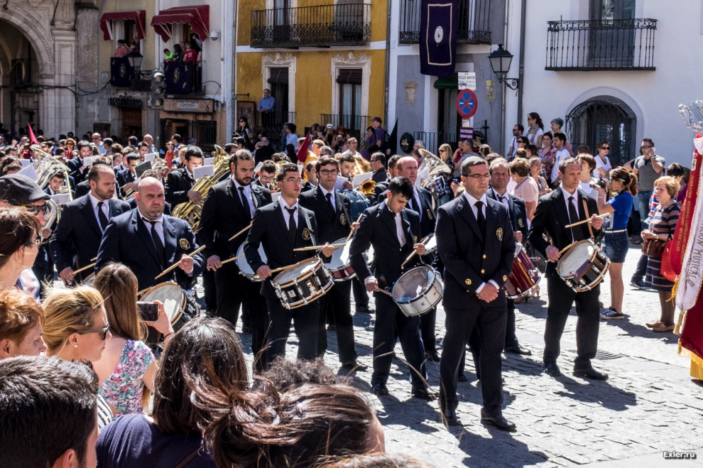 Кроме того, во время особо значимых шествий могут выступать и профессиональные коллективы - как, например, во время шествия, которое мы видели в Куэнке. Это главная площадь города.