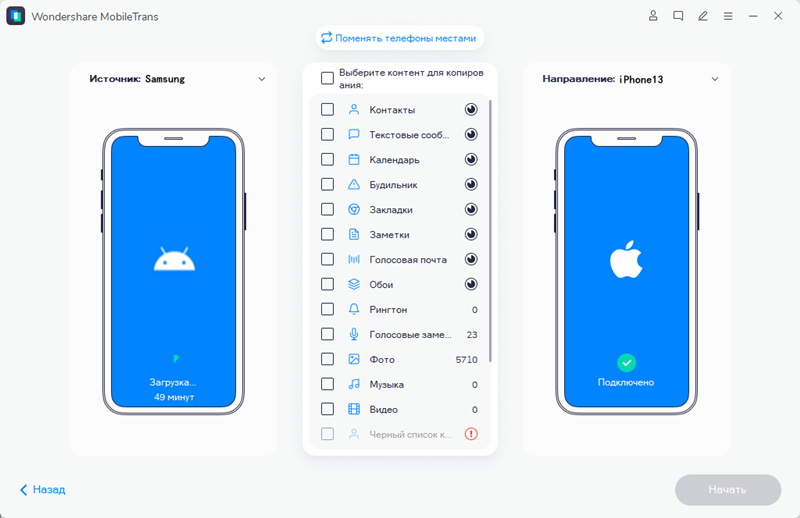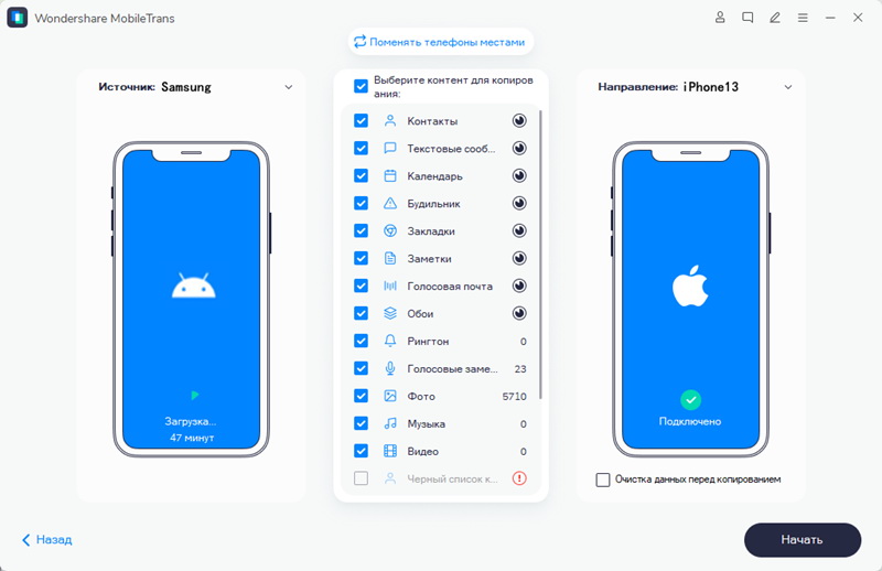 На официальном веб-сайте доступна более подробная информация о способах передачи данных с телефона на телефон. Скачаите MobileTrans, если программа вас заинтересовала.