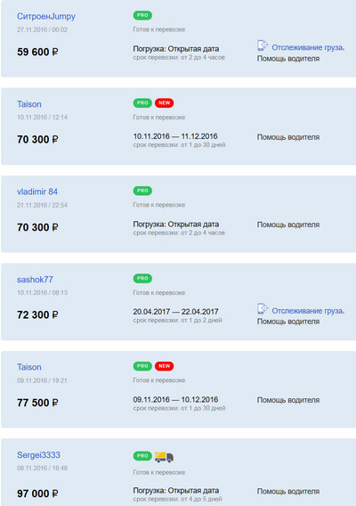 Заполняете, размещаете заявку. После этого начинают поступать предложения перевозчиков - обычно это происходит буквально в течение первых 9 минут. Подавляющее большинство заявок получают до 7 преложений из которых вы можете выбрать самое недорогое (напоминаю, что перевозчики, участвующие в сервисе, проверены и имеют свои рейтинги). Средняя экономия на перевозке обычно составляет порядка 35%.