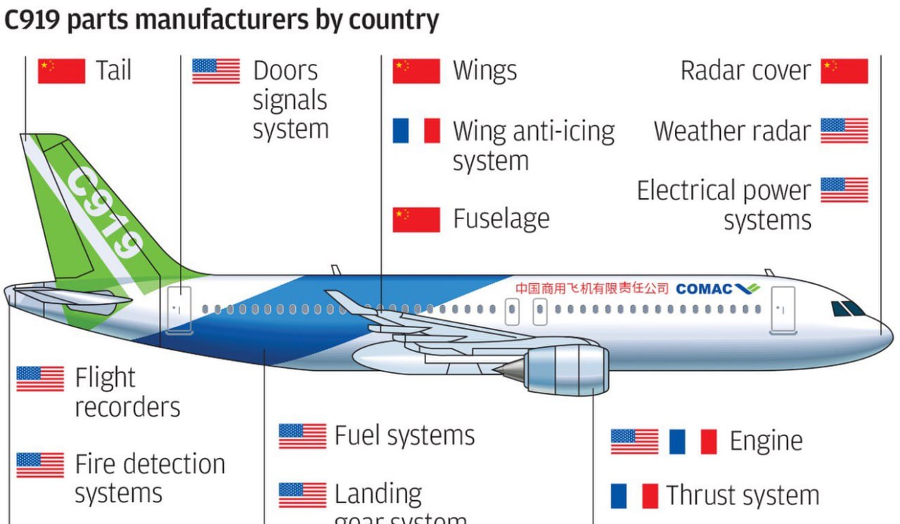 А Китай строит самолёты? Смогут они поставлять по полторы сотни бортов в год для нанесения на них триколора?
