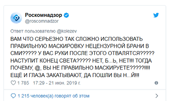 "Роскомнадзор" пояснил для СМИ, как правильно следует скрывать нецензурную брань.
