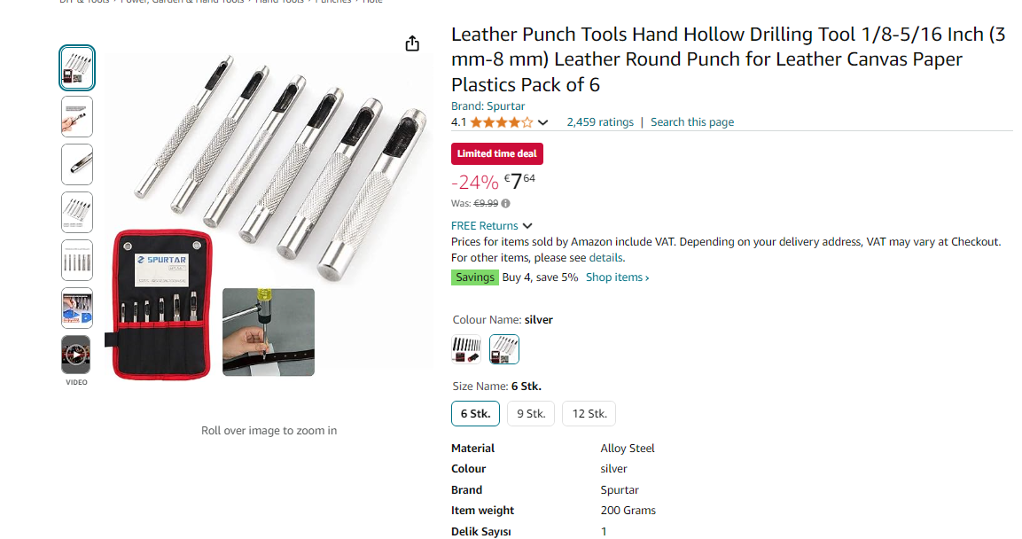 А тут приехали новые часы Samsung Galaxy Watch7, и оказалось, что мне там на ремешке не хватает одной дырочки, чтобы затянуть его так, как полагается. Уродовать новый ремешок страшно не хотелось, и я подумал, что должен же быть какой-то специальный инструмент для проделывания аккуратных дырок в ремешках и ремнях.