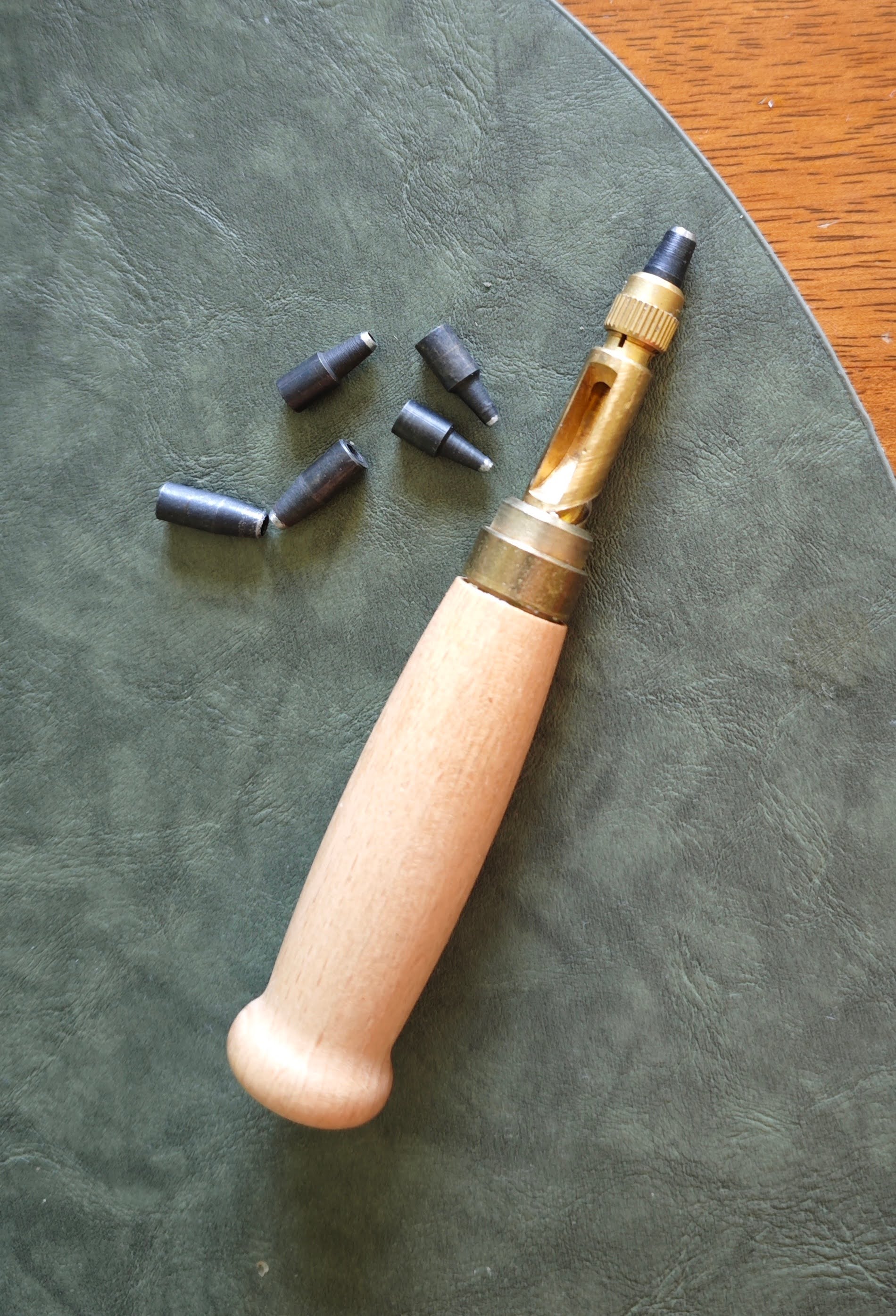 У меня есть такой инструмент но для проделывания дыр в кожаных ремнях я использую обычную дрель-шуруповерт. Со сверлом 3мм
