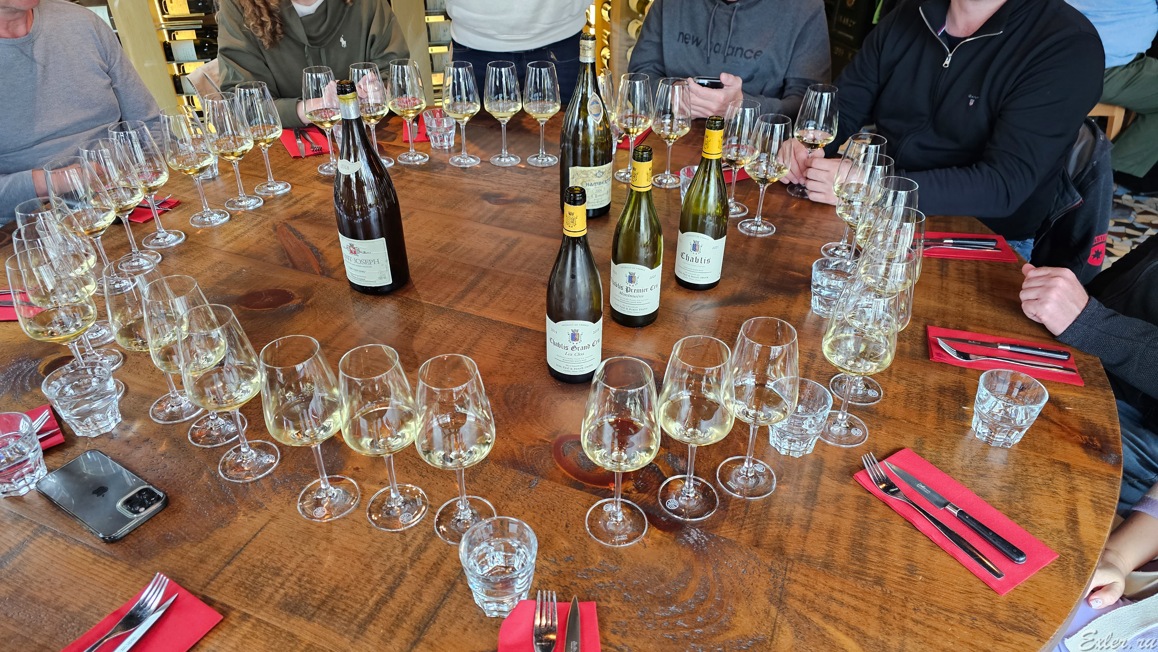 В хороших ресторанах также обычно бывает возможность взять на всех какое-нибудь знаковое вино, чтобы попробовать. Например, в ресторане Wine Not в Шабли мы попробовали линейку шабли известного производителя: взяли шабли, премье крю и гран крю на всех, и вышло это все по 20 евро на человека, а гран крю этого хозяйства - порядка €250 евро бутылка.
